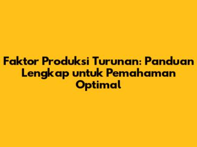 Faktor Produksi Turunan: Penjelasan & Contoh Lengkap