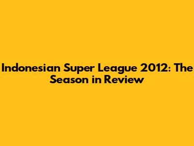 Indonesian Super League 2012: Final Standings & Highlights