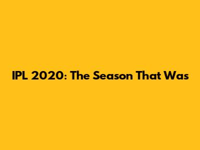 IPL 2020: The Season That Was