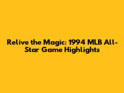 Relive The Magic: 1994 MLB All-Star Game Highlights